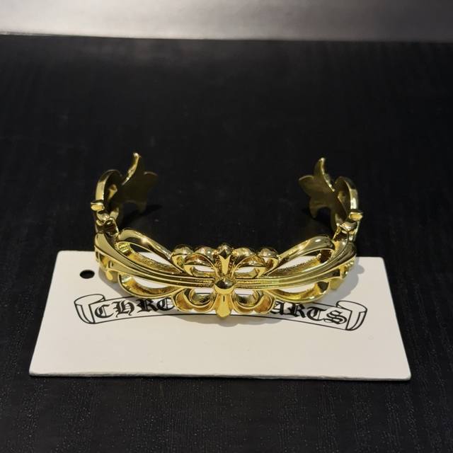 专柜品质 Chrome Hearts克罗心黄金色藤蔓十字架开口手镯 凹凸造型不同的花纹设计风格 呈现出与众不同 十字架 童军花是克罗心的志 所以更经久不衰 正品