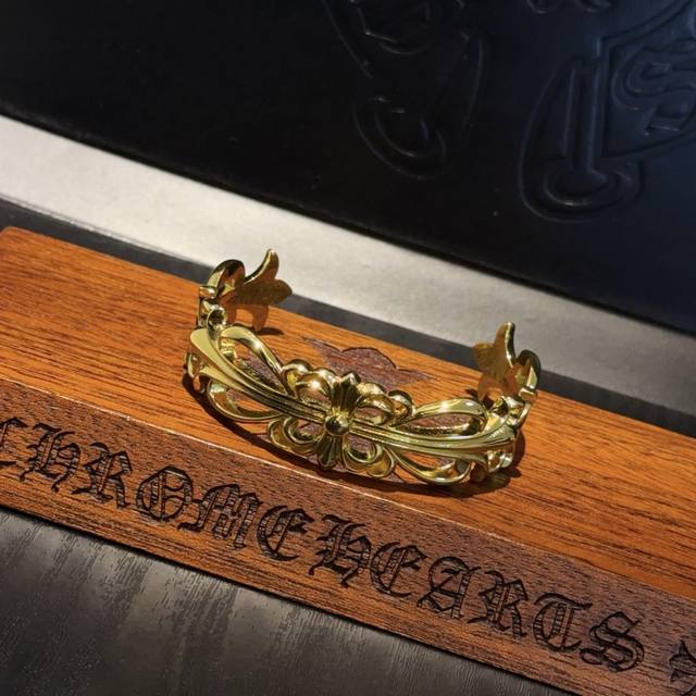 / 专柜品质 Chrome Hearts克罗心黄金色藤蔓十字架开口手镯 凹凸造型不同的花纹设计风格 呈现出与众不同 十字架 童军花是克罗心的志 所以更经久不衰 正品
