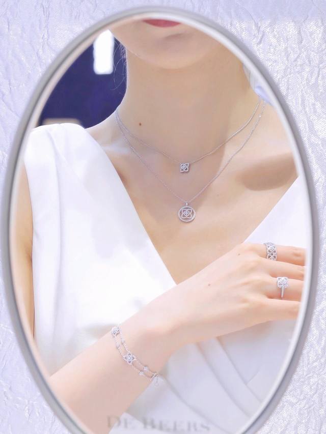 这款钻石手链以象征纯洁和永恒的莲花为设计灵感。 四片18K白金材质的密镶钻石花瓣簇拥着一颗圆形明亮式切割中央主钻。白金密镶钻石戒圈上,莲花图案排列组合,冷调的钻石光芒使钻戒散发着现代感十足的时尚美感。通体采用925银,保色程度更久。