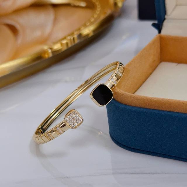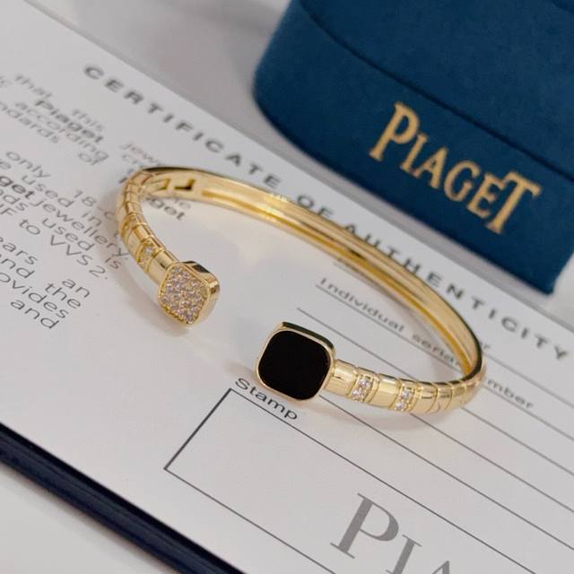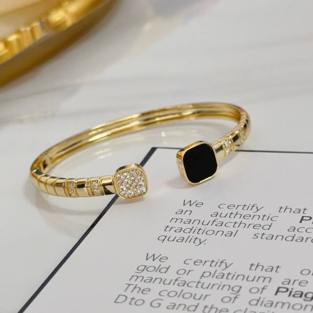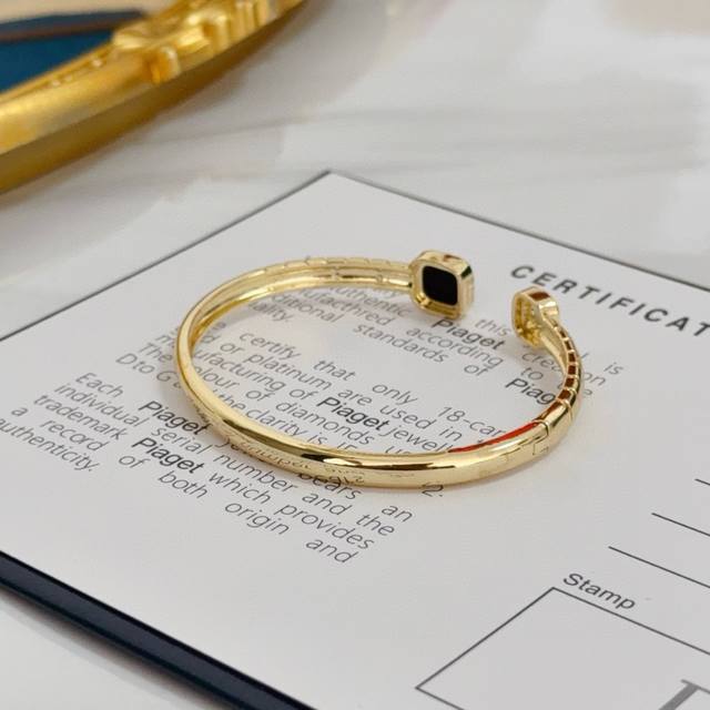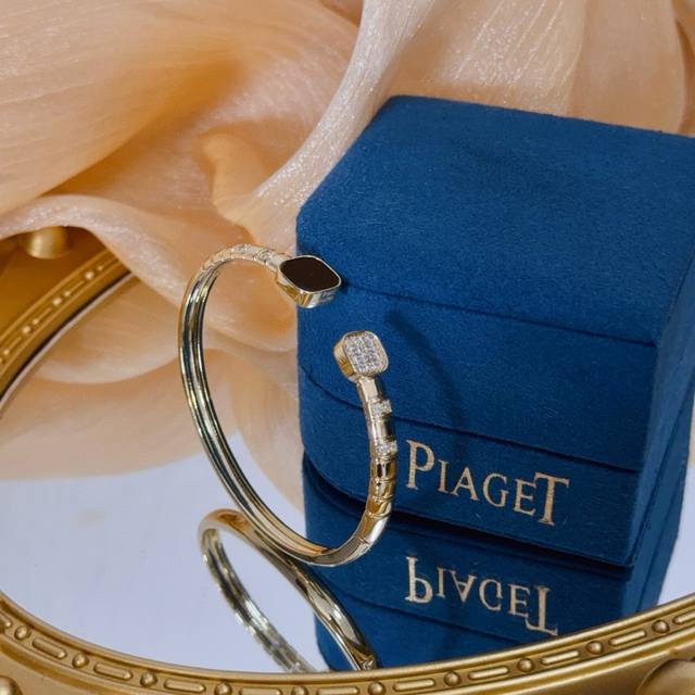 批Iaget伯爵手镯, 高端定制版本 镶嵌钻工艺 ,V金材质 ,细节处尽显奢华。金属质感与纹理相互映衬,光线之下,熠熠生辉,体现了奢华与典雅的气质。无论是商务场合还是甜蜜约会都能凸显精致和优雅~上手都太美了,绝对是你的梦中情镯。