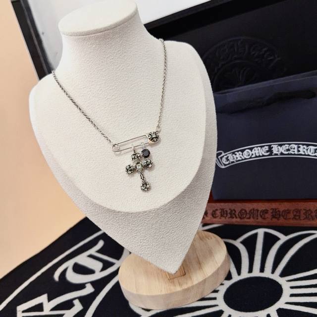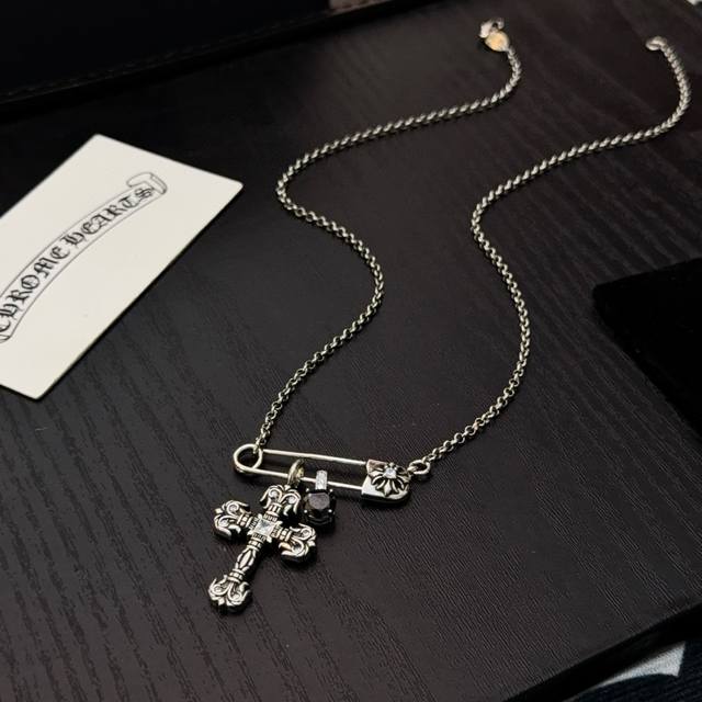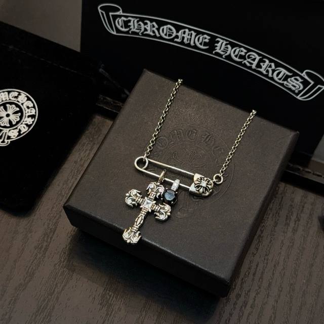 新款 专柜品质 Chrome Hearts克罗心经典复古别针项链 凹凸造型不同的花纹设计风格 呈现出与众不同 十字架 童军花是克罗心的志 所以更经久不衰 正品打
