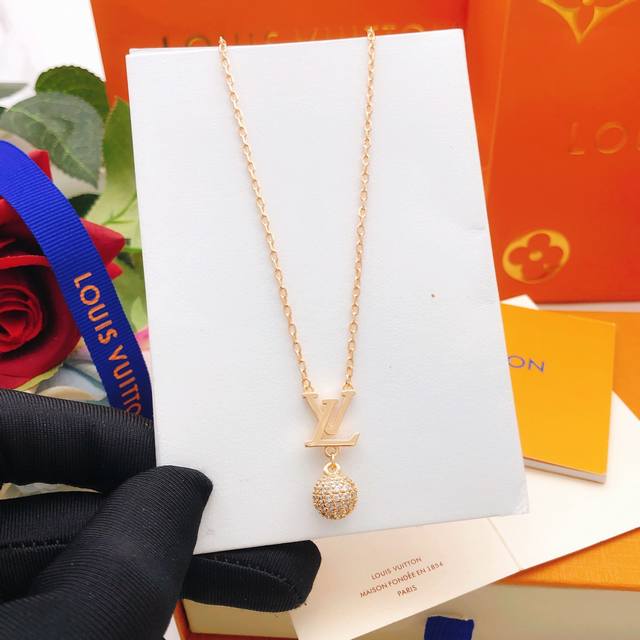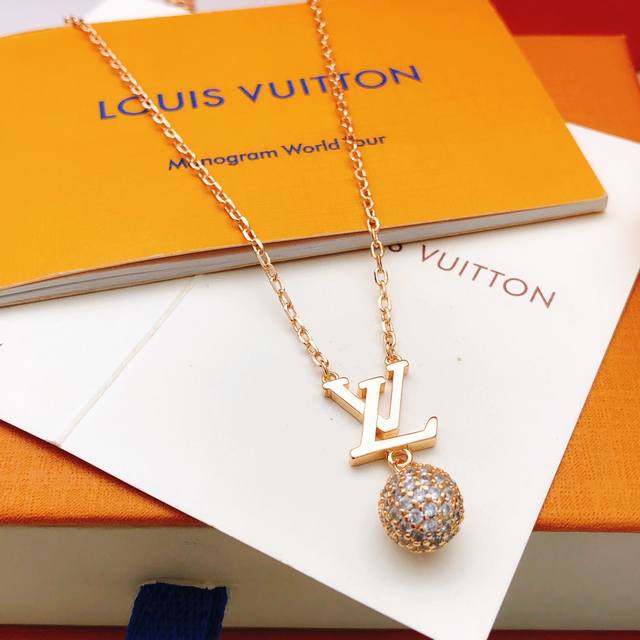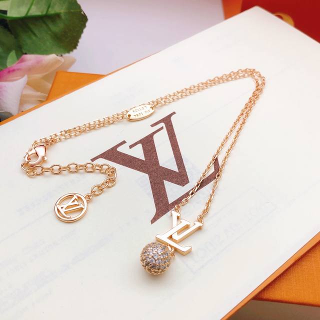 / 编号Lxl0382 Lv*最新款玫瑰金色圆形 球形项链 一致Z批黄铜材质