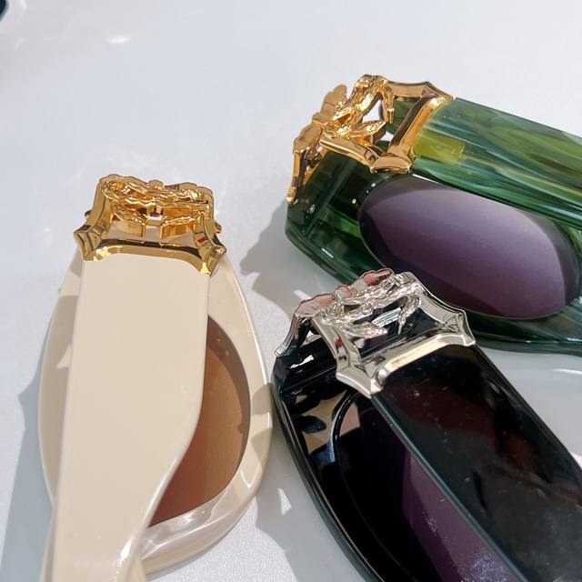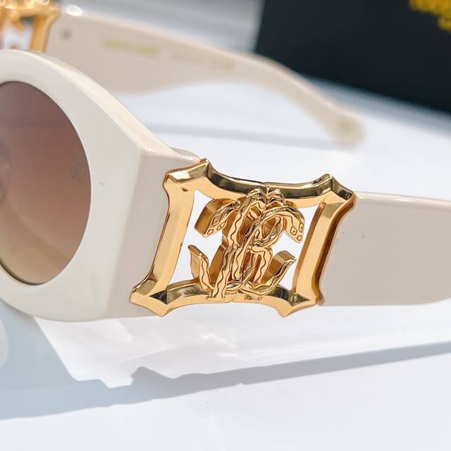 prad*时尚超大框猫眼太阳镜金边装饰高级感奢华墨镜优雅走秀款圆脸修饰