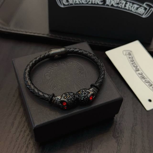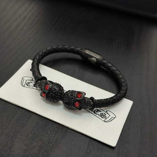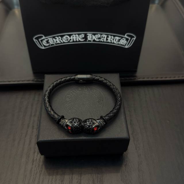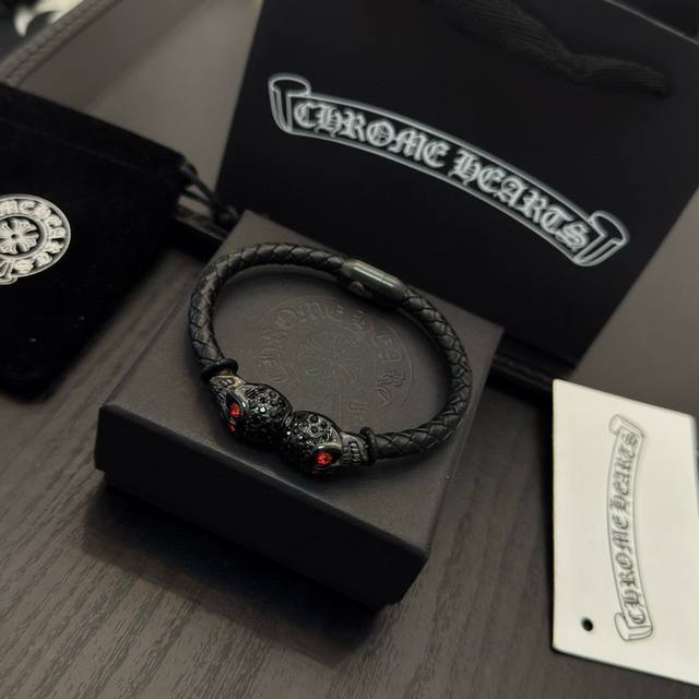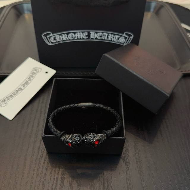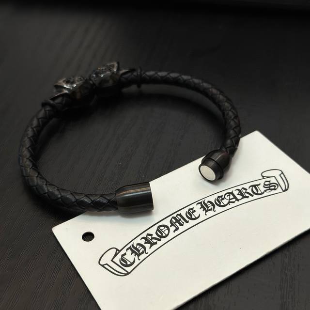 / 新款 专柜品质 Chrome Hearts克罗心骷髅头皮绳手镯 凹凸造型不同的花纹设计风格呈现出与众不同 十字架童军花是克罗心的标志 所以更经久不衰 正品打版C