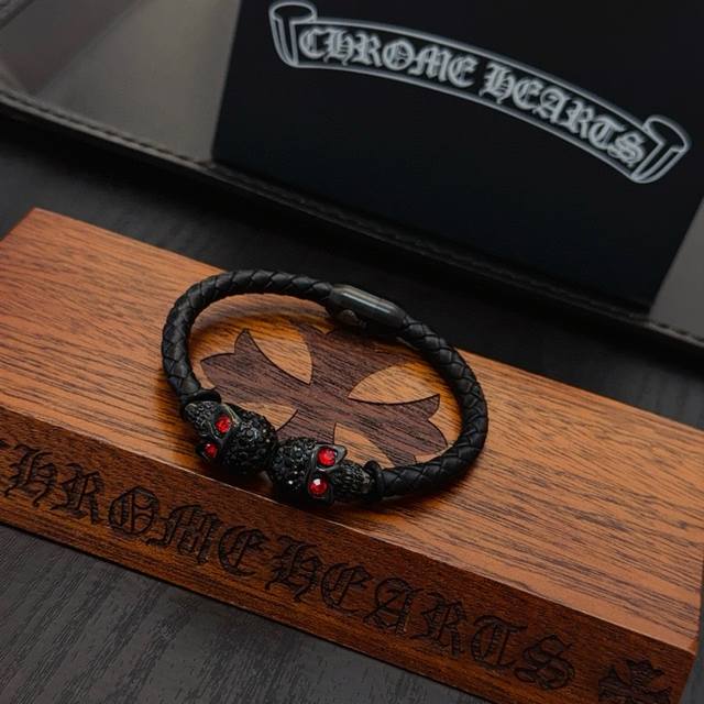 新款 专柜品质 Chrome Hearts克罗心骷髅头皮绳手镯 凹凸造型不同的花纹设计风格呈现出与众不同 十字架童军花是克罗心的标志 所以更经久不衰 正品打版C
