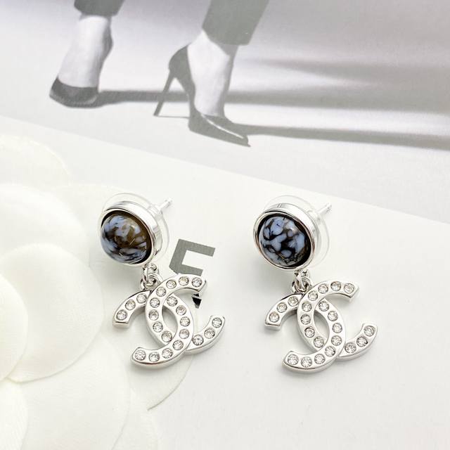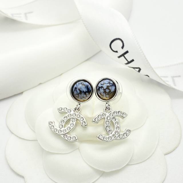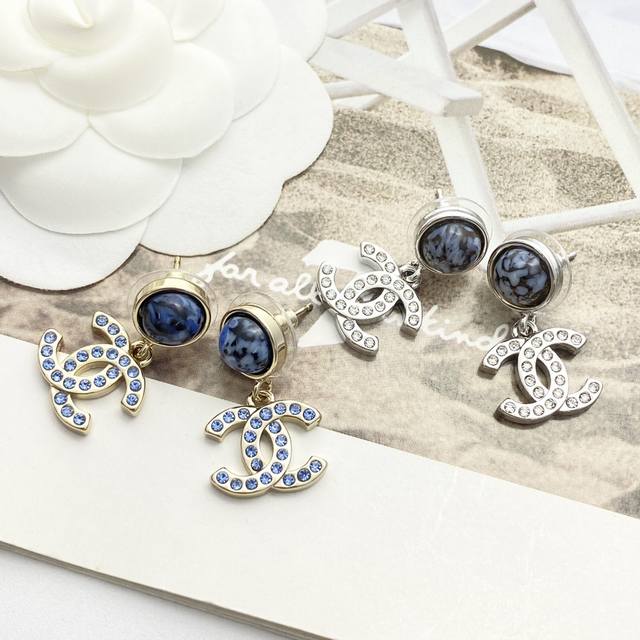 香奈儿耳钉热销款爆上新 Chan 25 半球青花瓷双C耳钉 半球青花瓷白色水钻双C,灵动又俏皮 蓝白配色,清新雅致!复古新中式风格别有一番风味