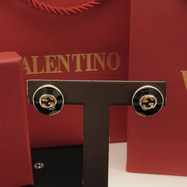 / 编号Ged0169 Gucc*最新款圆形黑色耳钉 一致Zp黄铜材质