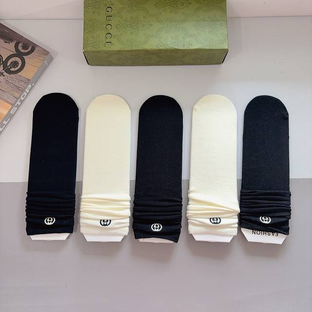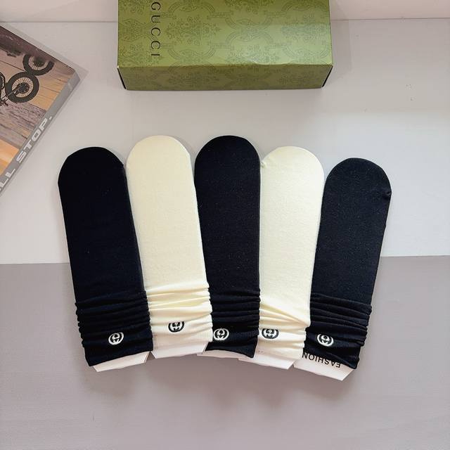 / 配包装 一盒5双 Gucci 古奇 高版本刺绣小腿直板袜子 纯棉面料,潮人必备 经典长筒袜,个性时尚百搭款,你值得拥有哦超柔软材质,舒适透气,时尚百搭款