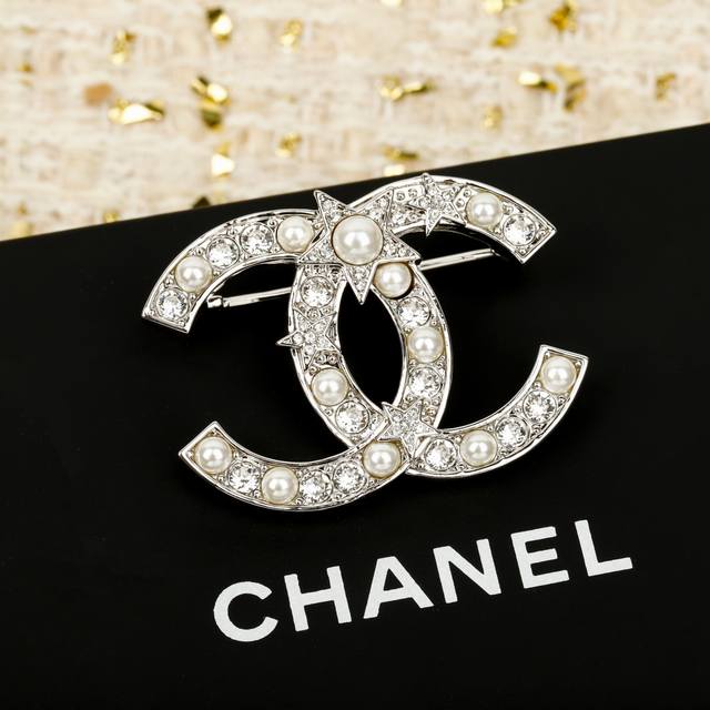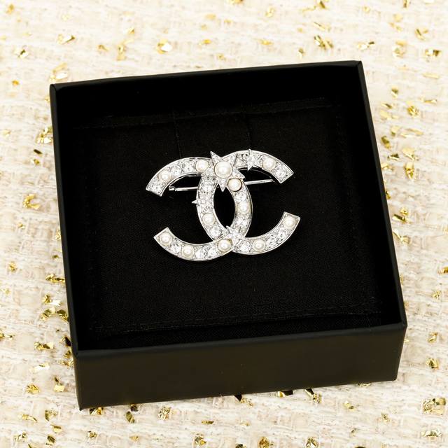 香 满钻星星珍珠双C胸针 春夏系列!真的好有设计感,很有高级珠宝感细节精致度太绝了每一件饰品都很有自己的风格也都是大秀上的作品、每一个也都是非常期待,实物非常的惊艳上身给人感觉很有品味又贵气!本季依然是以银色为主!姐妹们闭眼冲吧
