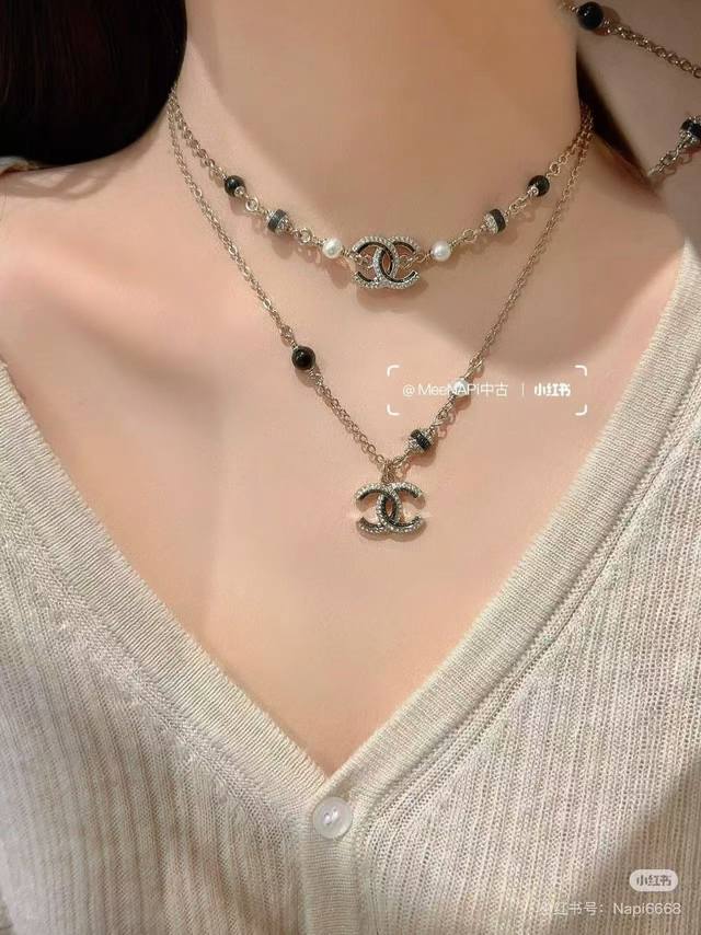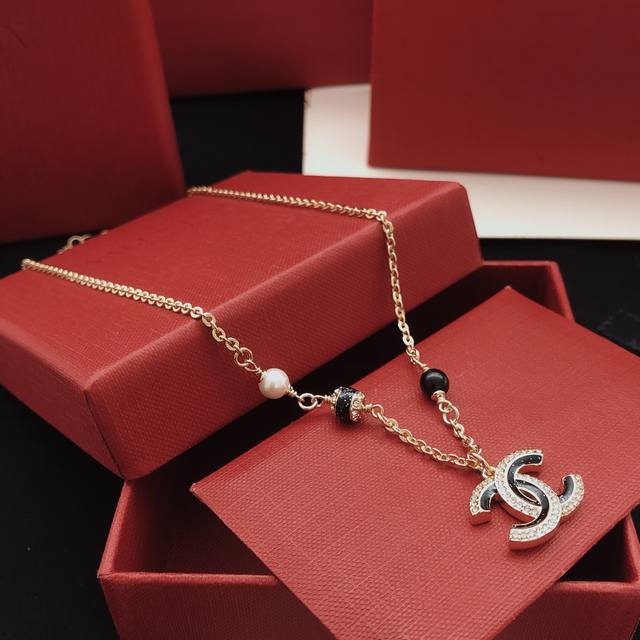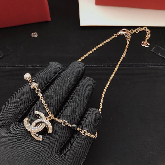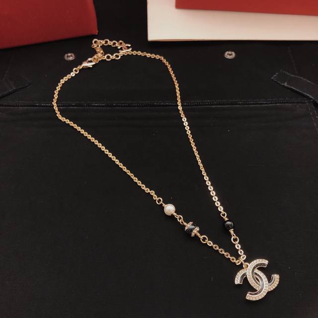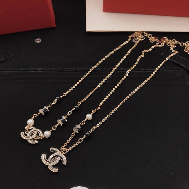 Ch*Nel最新款黑色珍珠项链 一致Z批黄铜材质