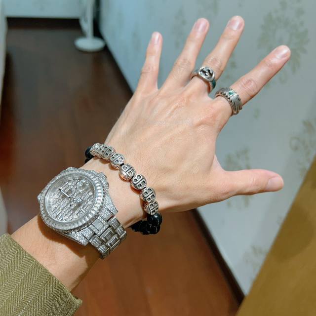 专柜精工版本天然虎眼石巴黎世家手链 泰银风格巴黎世家手链 明星同款男女款 复古做旧风 原版复刻 纯手工打造 ~正品开模潮流时尚必备 男女均可佩戴 情侣款同款 摇滚朋克泰银风格 复古元素 潮流百搭 超级喜欢下单备注手腕周长