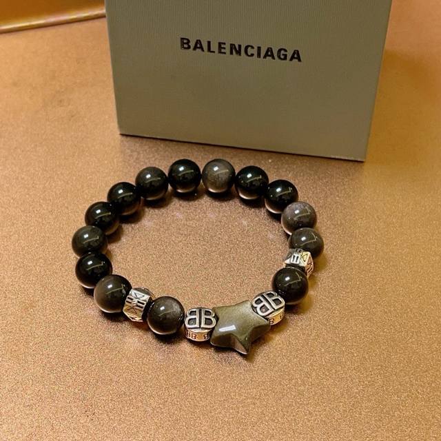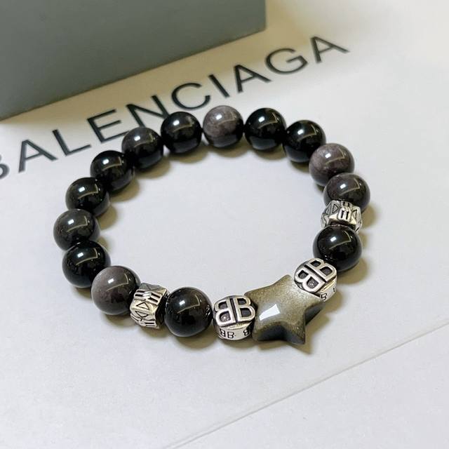 新品发布会专柜精工版本天然黑曜石巴黎世家手链 黑曜石泰银风格巴黎世家手链 明星同款男女款 复古做旧风 原版复刻 纯手工打造 ~正品开模潮流时尚必备 男女均可佩戴