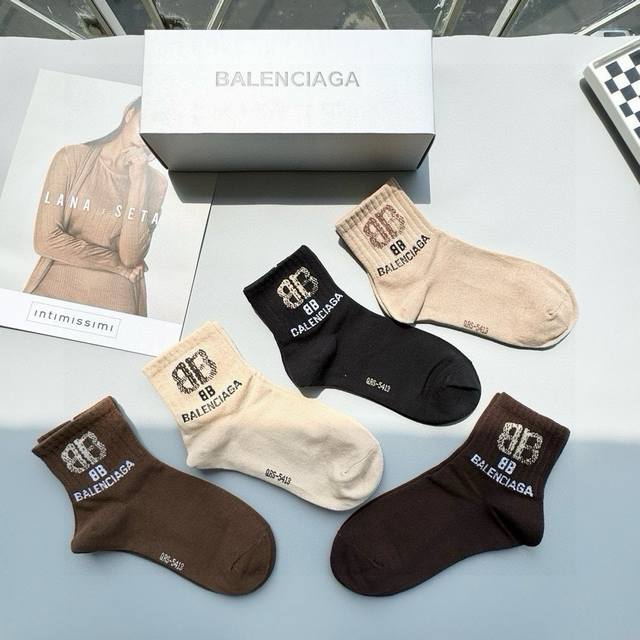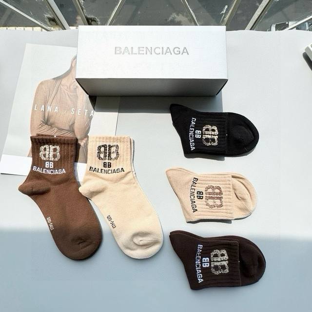 / 配包装 一盒五双 Balenciaga 巴黎世家 高品质好看到爆炸欧美大牌中筒袜男女款潮人必不能少的专柜代购品质中筒袜子 ,搭配起来超高逼格 时髦度爆表啊啊啊啊