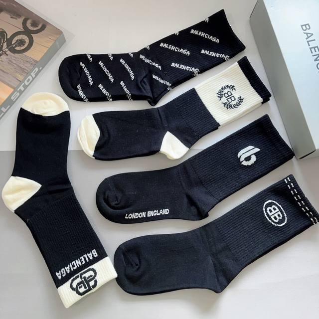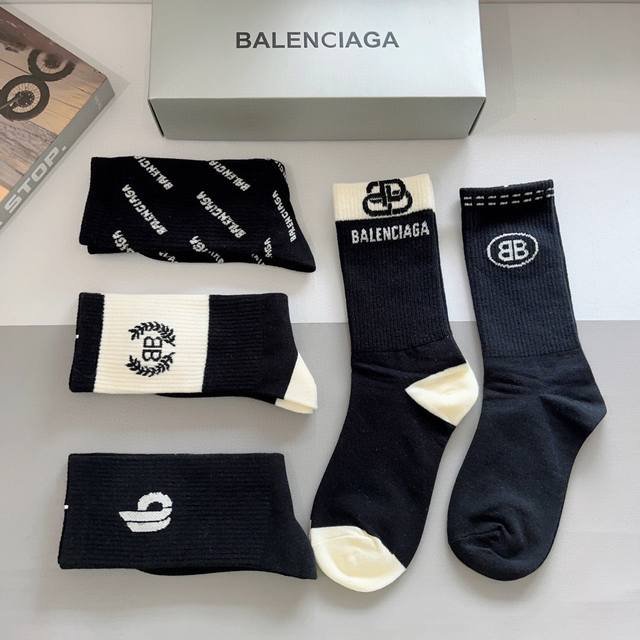 配包装 一盒五双 Balenciaga 巴黎世家 高品质好看到爆炸欧美大牌中筒袜男女款潮人必不能少的专柜代购品质中筒袜子...