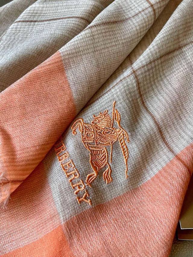 双面拼色羊绒围巾 巴宝莉双拼色 双面提花羊绒围巾 24年秋冬最新款 专柜排队买 绝对的上身效果极佳...
