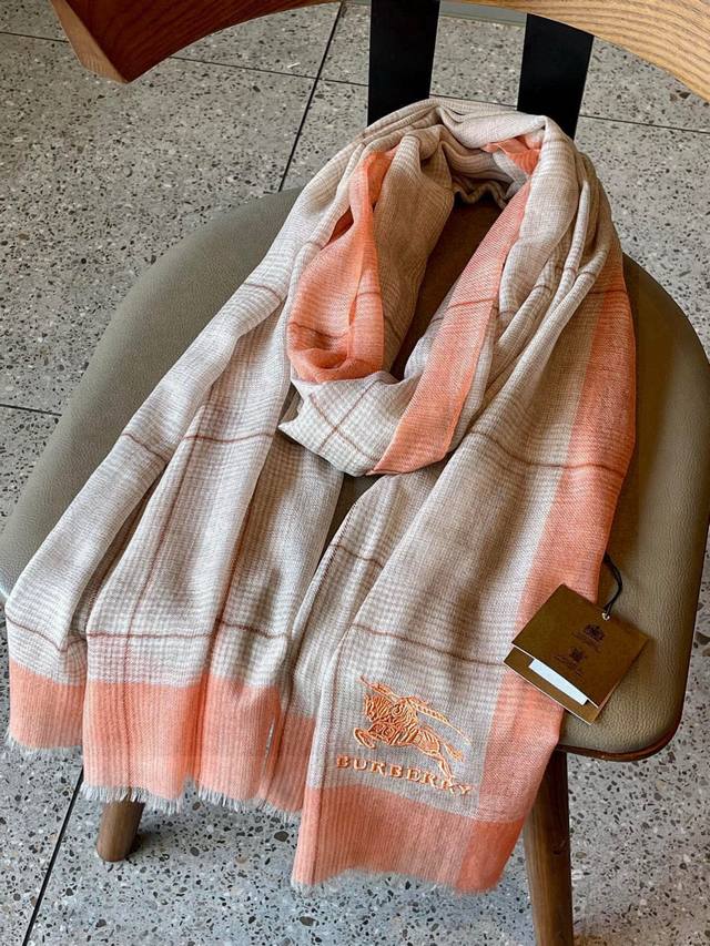 / 巴宝莉轻盈格纹围巾最新款出货了,精美马标刺绣Logo,精湛制作工艺。首先臻选上乘的超细羊毛纤维,进行纯手工精梳处理,再进行清泉水浸泡涤荡,使羊毛纤维呈现出独特的