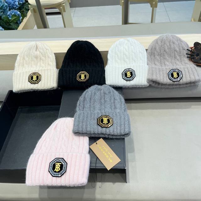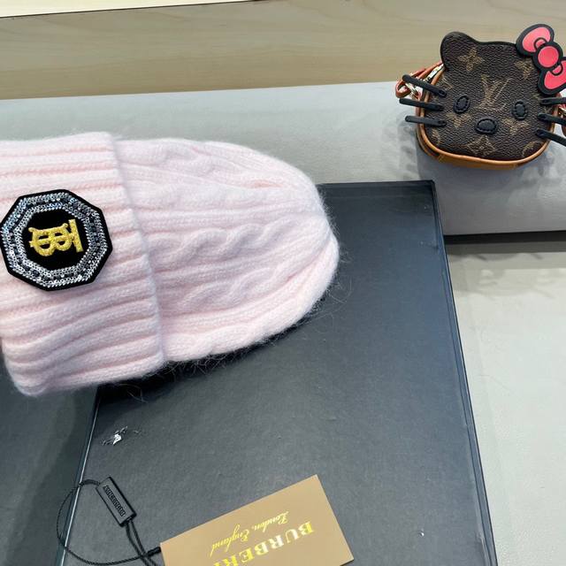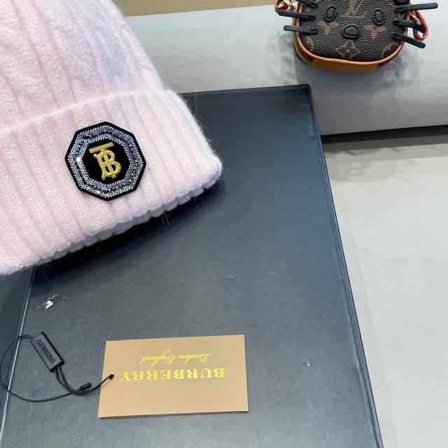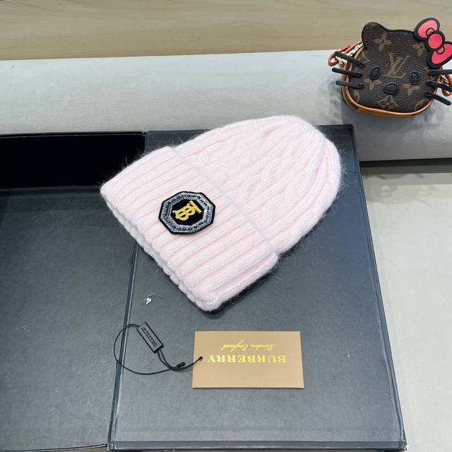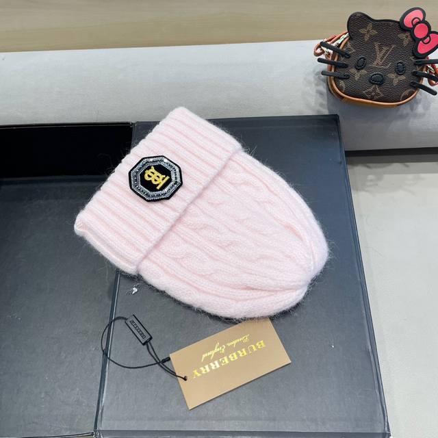 / 巴宝莉Burberry 新款针织麻花毛线帽女秋冬季护耳防寒保暖帽子字母贴布冷帽潮