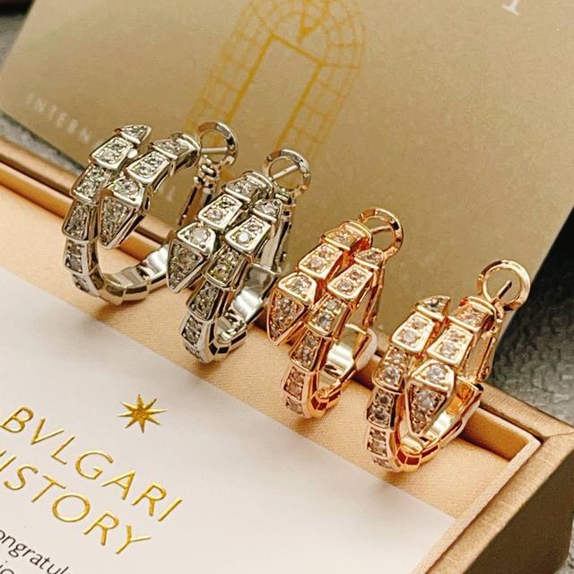 / 宝格丽Bvlgari最新款玫瑰金色镶砧蛇头耳钉 一致Zp黄铜材质,非常的上镜设计很特别值得入手高级手工坊系列