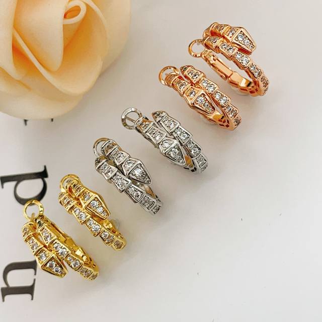 宝格丽Bvlgari最新款玫瑰金色镶砧蛇头耳钉 一致Zp黄铜材质,非常的上镜设计很特别值得入手高级手工坊系列 DDD