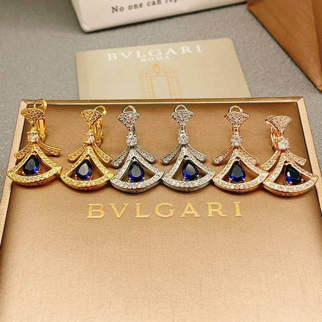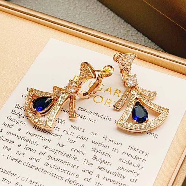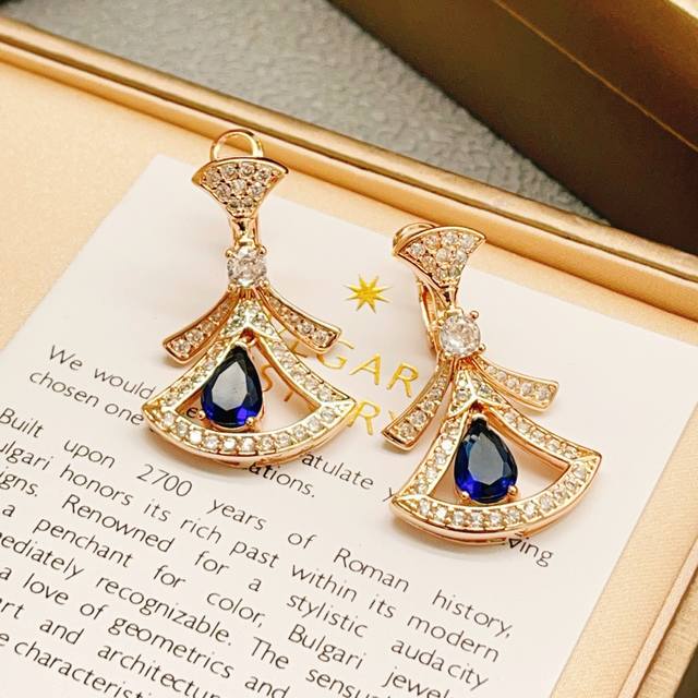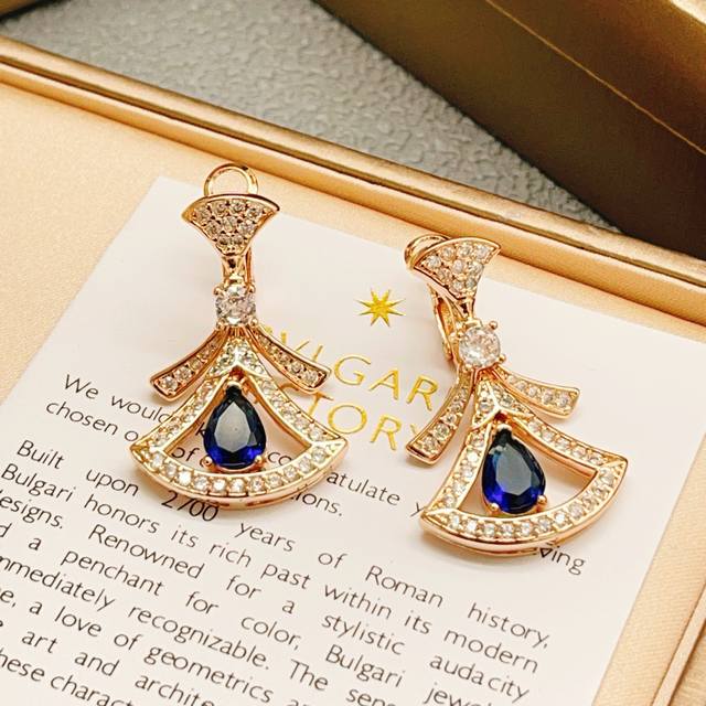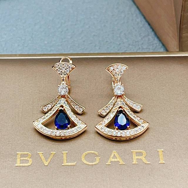 / 宝格丽Bvlgari最新款蓝色吊钻裙子玫瑰金耳钉 一致Zp黄铜材质,非常的上镜设计很特别值得入手高级手工坊系列
