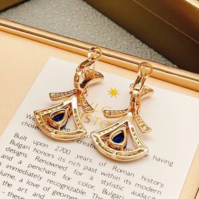 宝格丽Bvlgari最新款蓝色吊钻裙子玫瑰金耳钉 一致Zp黄铜材质,非常的上镜设计很特别值得入手高级手工坊系列 DDD