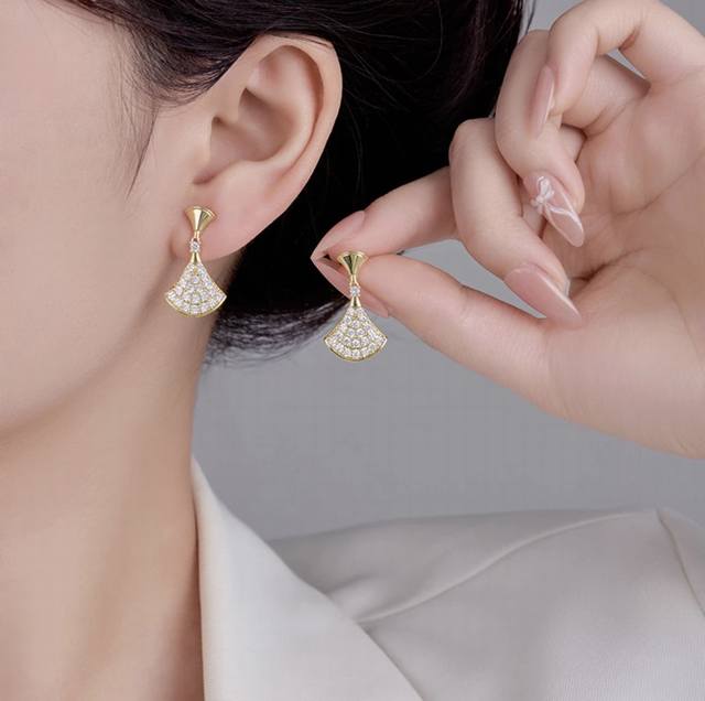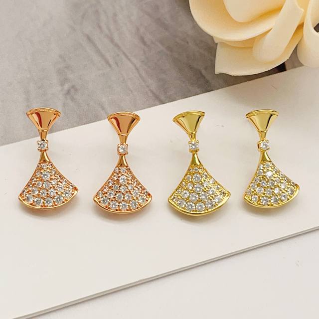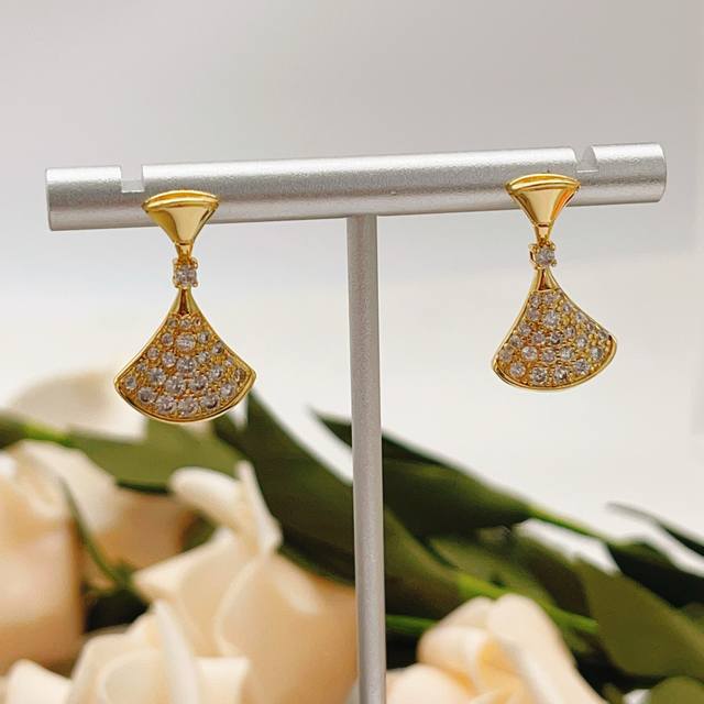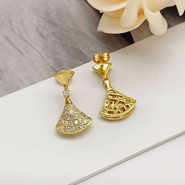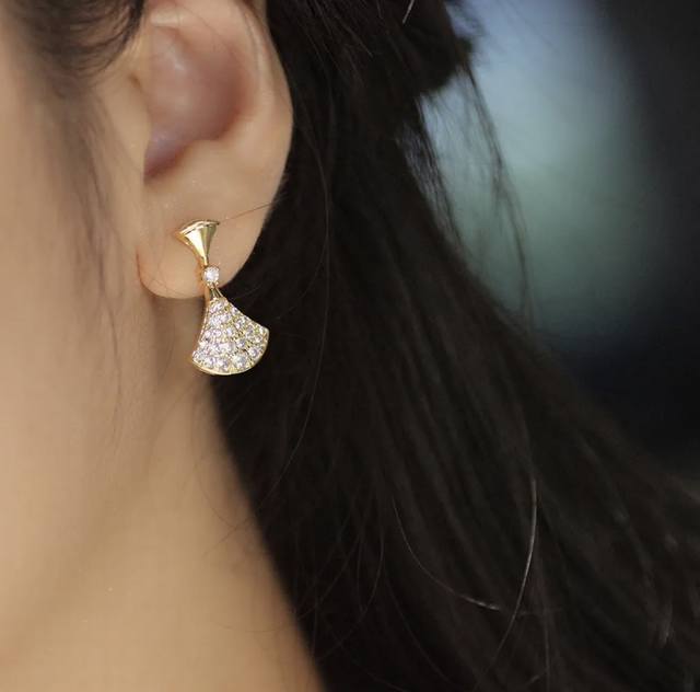 宝格丽Bvlgari最新款金色镶钻扇子耳钉 一致Zp黄铜材质,非常的上镜设计很特别值得入手高级手工坊系列 DDD