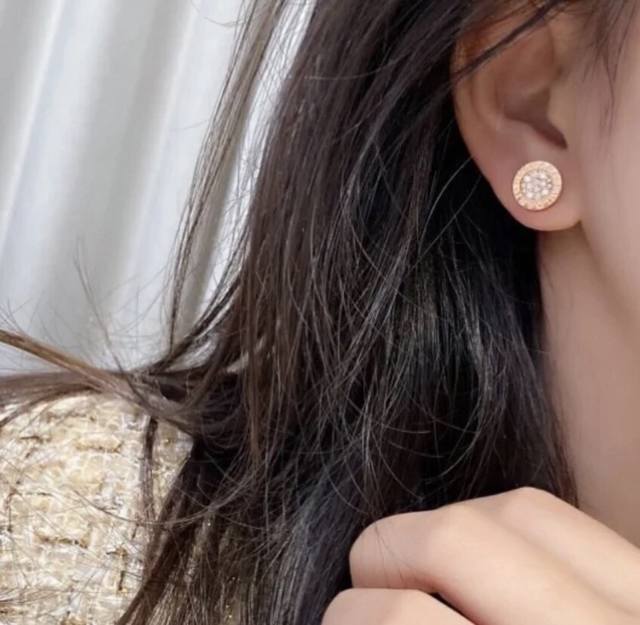 Be026金色 DDD Be027银色 DDD Be028玫瑰金 DDD 宝格丽Bvlgari最新款三色镶钻圆饼耳钉 一致Zp黄铜材质,非常的上镜设计很特别值得