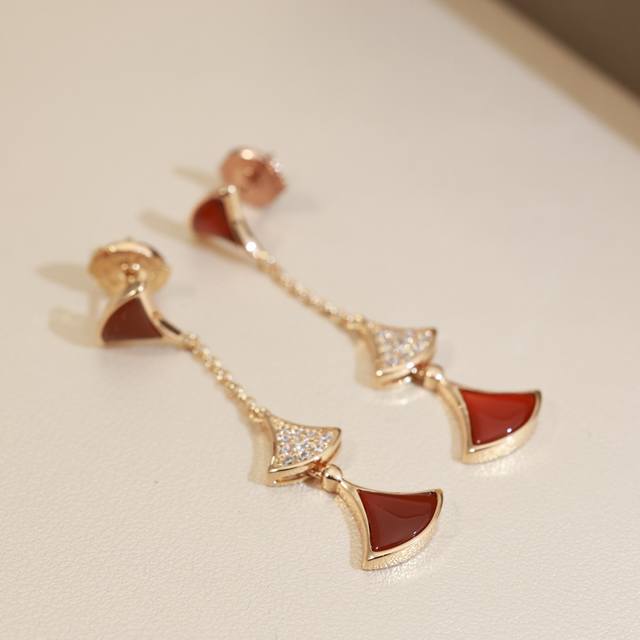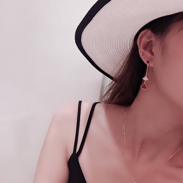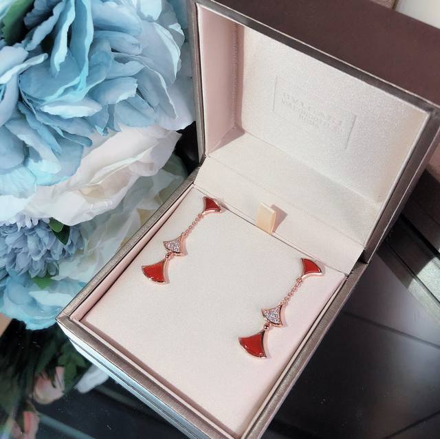 Bvlgari宝格丽三花长款耳钉 Diva系列 高端定制火爆S925银针亚金材质 镶钻黑玛瑙 白母贝 红玛瑙 扇形裙子 耳钉 耳环 奢侈美丽晚宴必备。 高尚 好