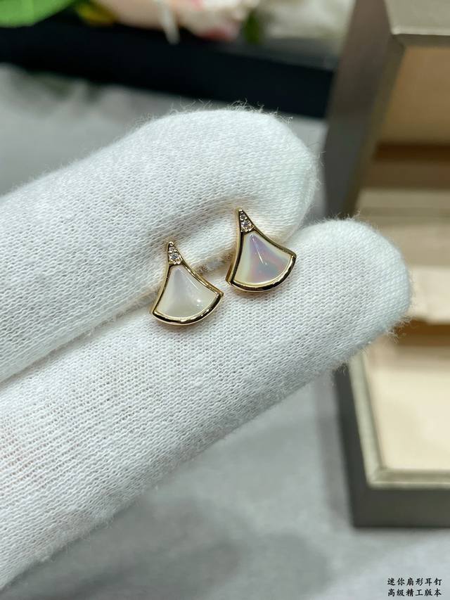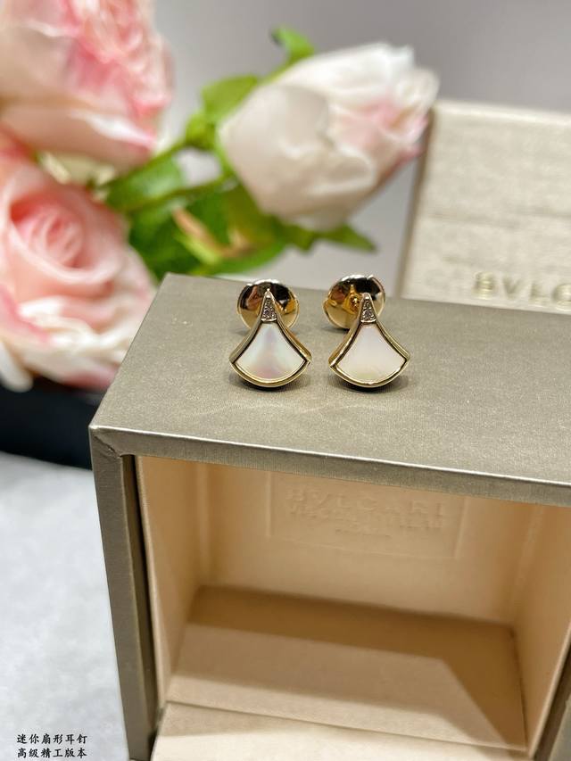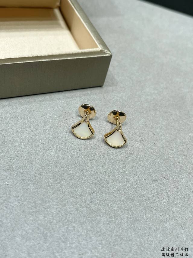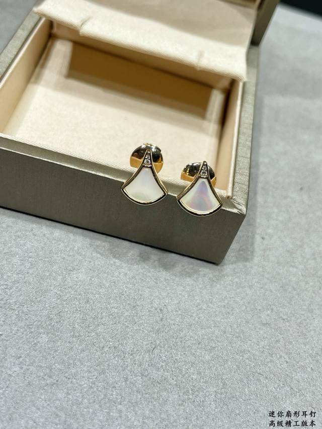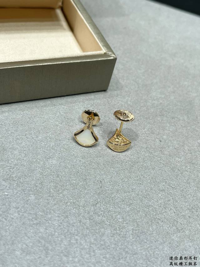 V金镀材质 4560210 宝格丽高级迷你白贝扇形耳钉 高端定制火爆专柜耳钉 原版Logo好美腻百搭款