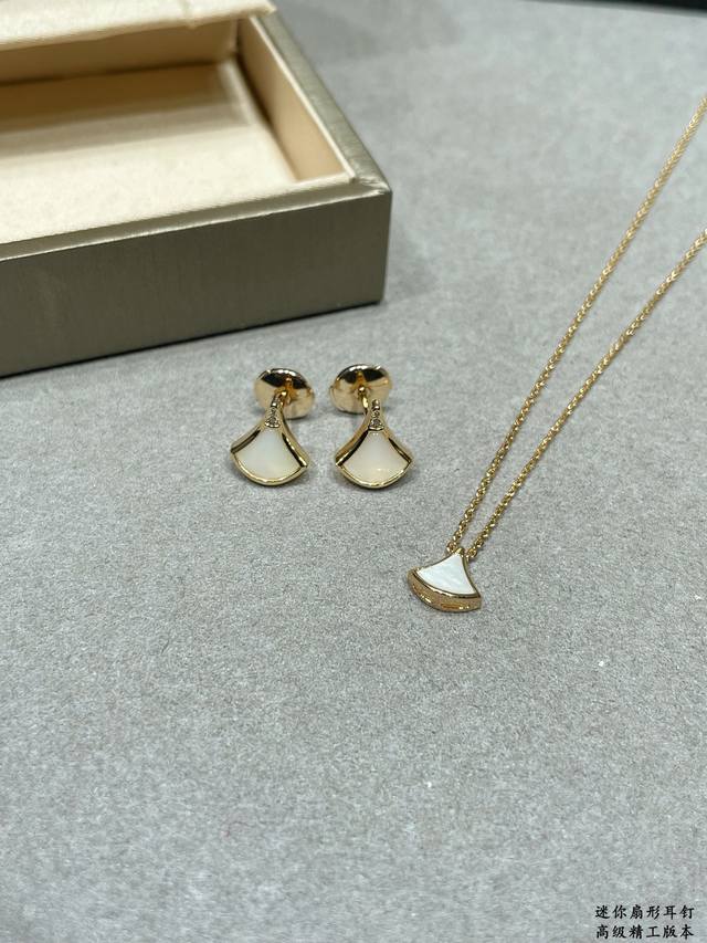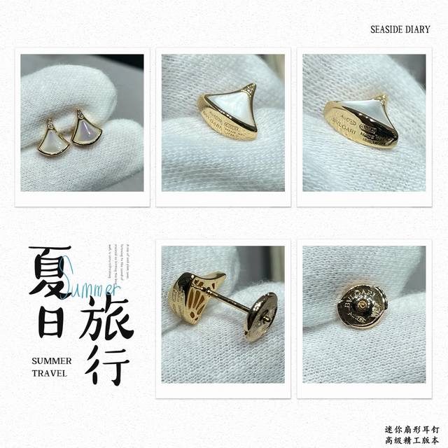 / V金镀材质 4560210 宝格丽高级迷你白贝扇形耳钉 高端定制火爆专柜耳钉 原版Logo好美腻百搭款