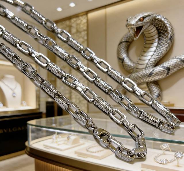 V金材质 宝格丽高级三圈满钻蛇项链,真香系列... 实物简单大方 做工精致。