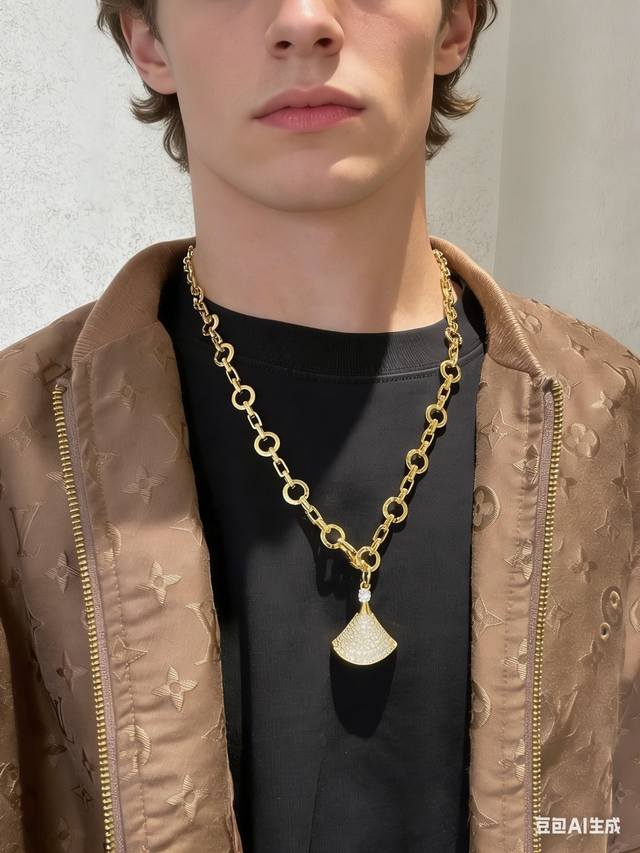 Bx030 Bvlgari最新款绿色扇子玫瑰金大号项链 一致Zp黄铜材质,非常的上镜设计很特别值得入手高级手工坊系列