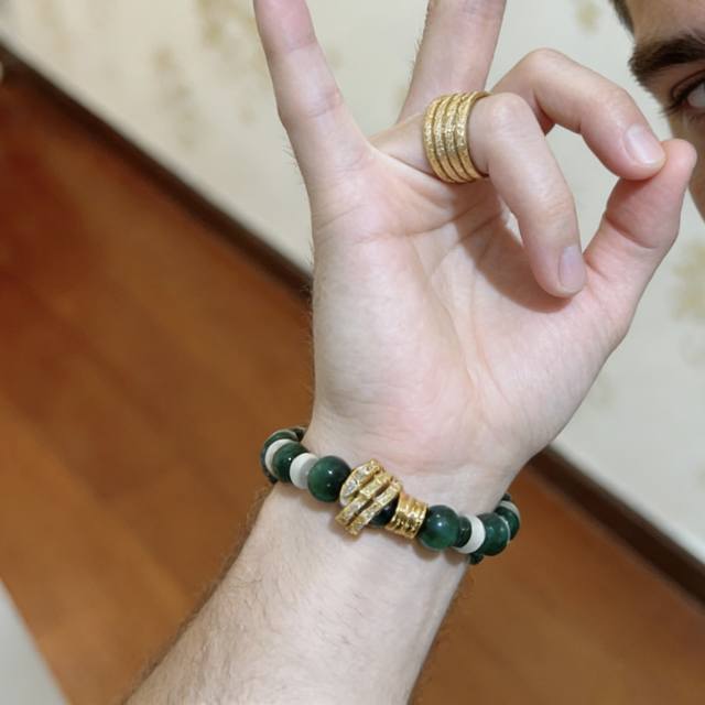 宝格丽Bvlgari高品质男士21Cm手镯,非常百搭的一款14K精钢保色材质厚镀厚金。完美镶钻精心打磨,与金属边完美契合!充满诱惑和...