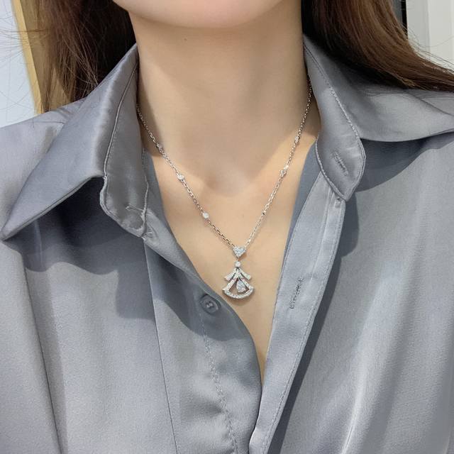 我们出品 彩钻小裙子项链 Zp260 000+ 可订做18K真金真钻版,只做对版真金货,价询客Fudivas’Dream系列项链体现意式优雅魅力,以神秘且令人难以忘怀的气质,释放女性力量。充满女性魅力的精致扇形图案,从罗马卡拉卡拉大浴场 Baths Of Caracall 的多彩马赛克装饰中汲取灵感,以意大利式优雅魅力的精髓彰显Bvlgari宝格丽同“永恒之城”罗马之间的历史渊源。精致而轻巧的镂空设计重新诠释该系列的经典造型,演绎着虚实之间的魅力。Divas‘ Dream系列18K玫瑰金镂空项链,镶嵌1颗