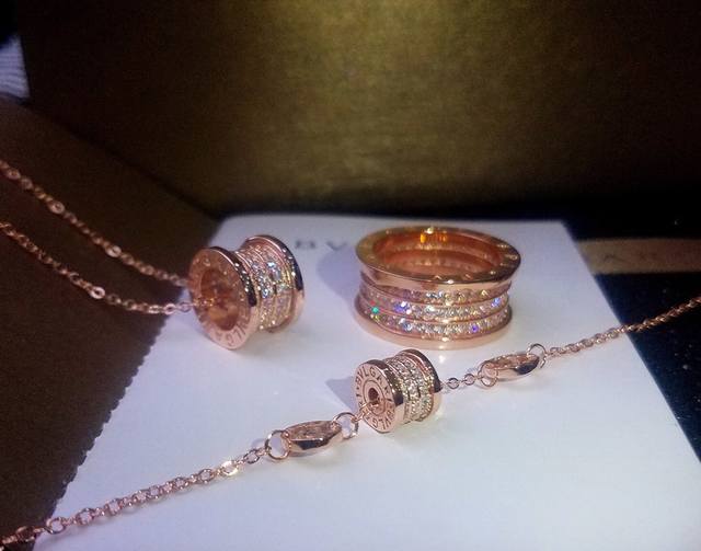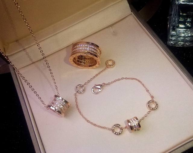 / 项链 戒指 手链 Bvlgari宝格丽B.Zero1系列三环满钻项链手链戒指[调皮]完美还原专柜细节 镶嵌进口高碳钻 [转圈]独家实拍 图片可见工艺 高端亚金电