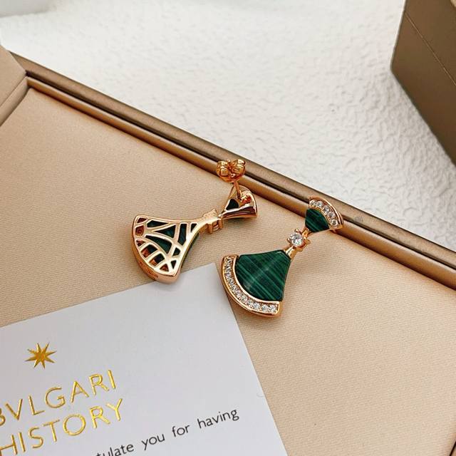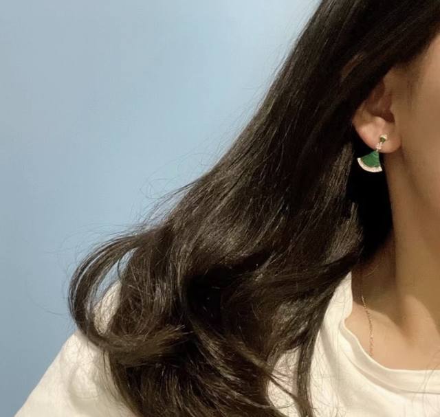 / Be012 Bvlgari最新款玫瑰金绿色扇子耳钉 一致Zp黄铜材质,非常的上镜设计很特别值得入手高级手工坊系列