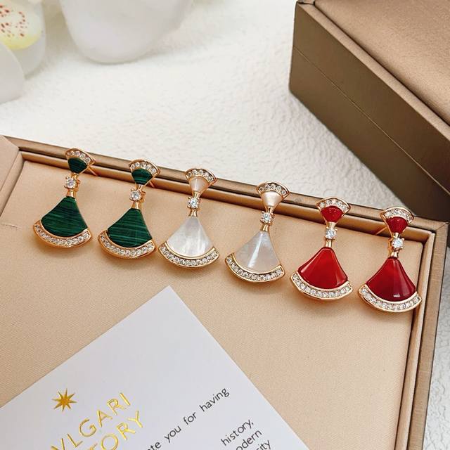 Be012绿色 Be013白色 Be014红色 Bvlgari最新款玫瑰金三色扇子耳钉 一致Zp黄铜材质,非常的上镜设计很特别值得入手高级手工坊系列
