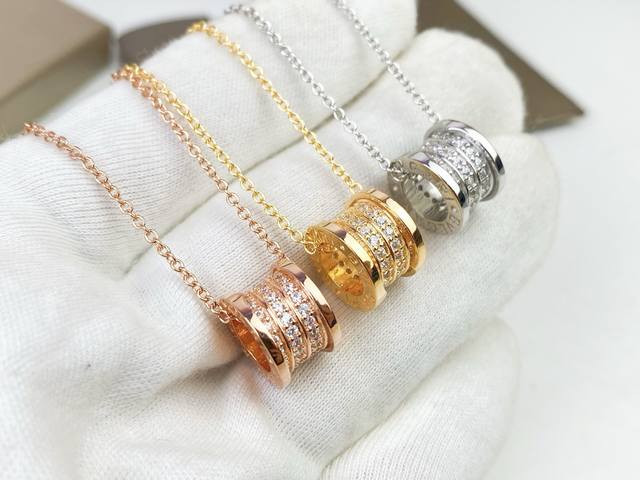 / Bvlgari宝格丽B.Zero1系列三环满钻项链三排钻项链完美还原专柜细节 镶嵌进口高碳钻 [转圈]独家实拍 图片可见工艺 高端白铜电镀18K玫瑰金 黄金 白