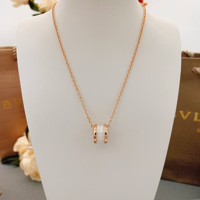 / Bvlgari最新款玫瑰金弹簧白陶瓷项链 一致Z批黄铜材质,非常的上镜设计很特别值得入手高级手工坊系列