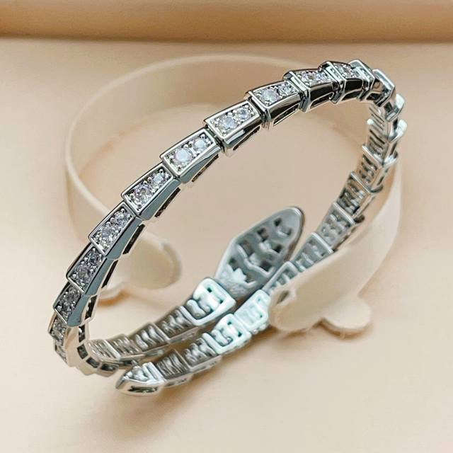 / Bvlgari最新款银色镶钻蛇头手镯 一致Z批黄铜材质,非常的上镜设计很特别值得入手高级手工坊系列