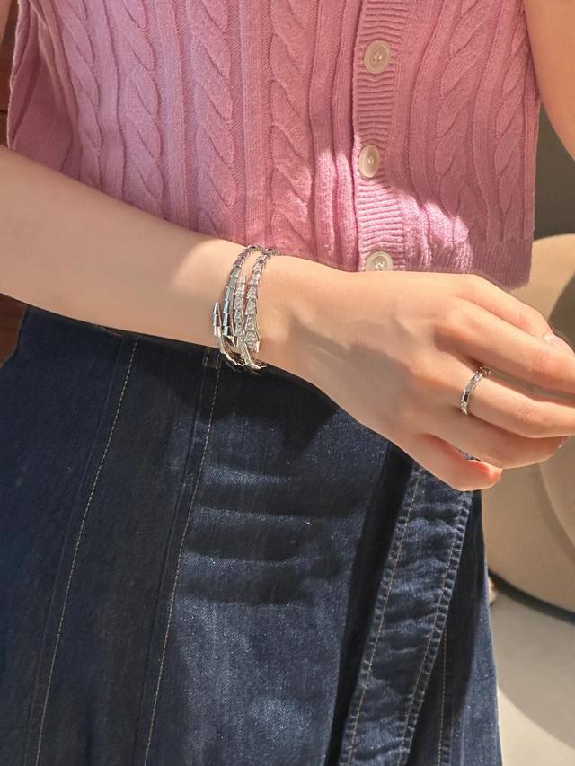 Bvlgari最新款银色镶钻蛇头手镯 一致Z批黄铜材质,非常的上镜设计很特别值得入手高级手工坊系列