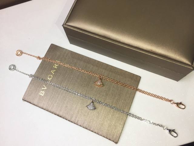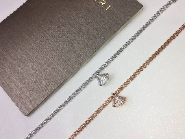 / Bvlgari 宝格丽满钻手链 Diva 裙子系列 扇形 手链高端定制亚金电镀18K玫瑰金工艺 镶嵌高端仿真钻气质美女必备单品 超高档的设计 宝格丽原版龙虾扣