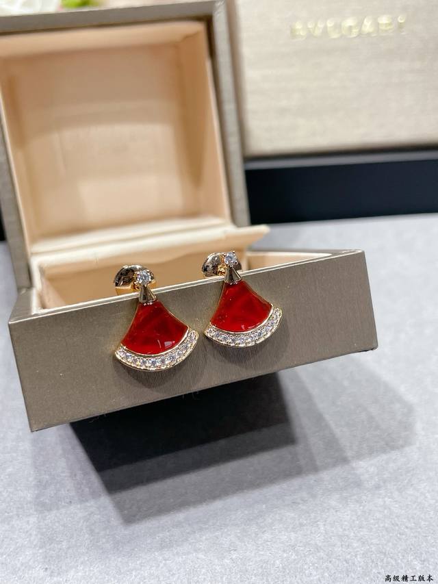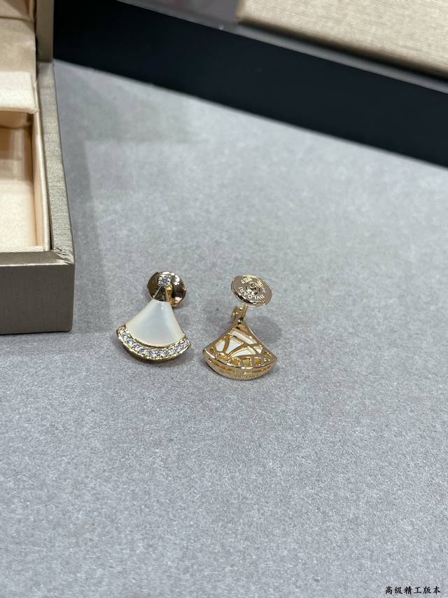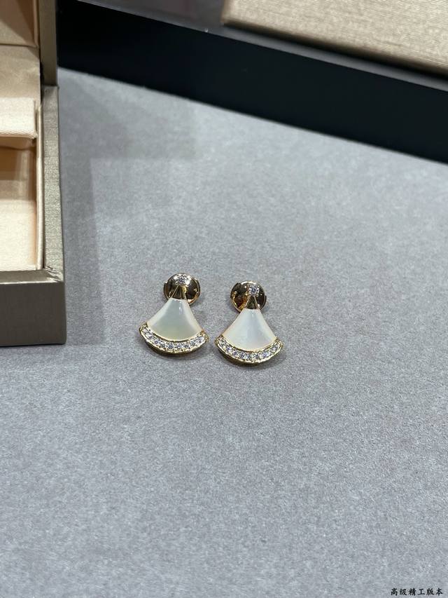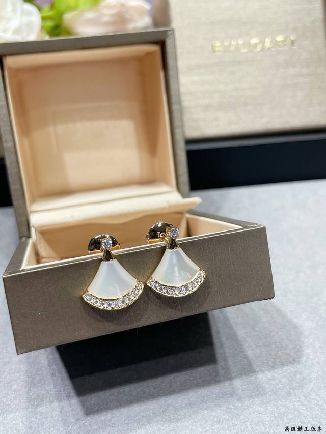 / V金材质 宝格丽高级贝母下摆钻裙子耳钉,Divas’Dream系列七夕限定!市面唯一与专柜底部钻位大小钻密镶!并非普通货采用一种规格钻镶嵌!高端定制火爆专柜一比