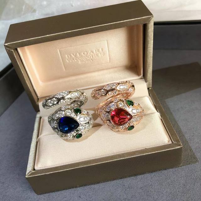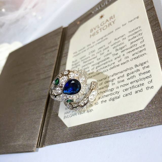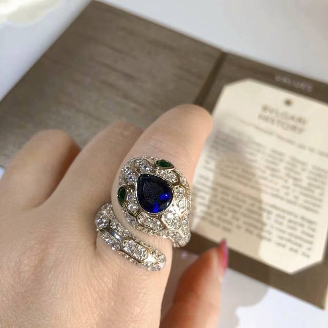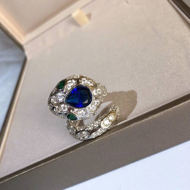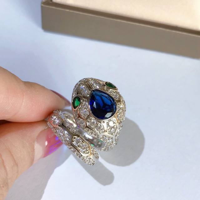 V金高版 Bvlgari宝格丽大头蛇蓝宝石蛇戒指 。以令人沉醉的绝妙设计魅力、诱惑和迷人的性感,以此向其灵兽致敬密镶钻石,梨形明亮式切割钻石尽显极致光芒,呈现灵