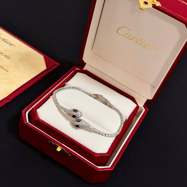 细版光金双头豹子版 霸气花斑黑豹手镯。PanthèRe De Cartier卡地亚豹子手镯,电镀18K金!亚金材质男女都可佩戴哦刻有Logo DDD
