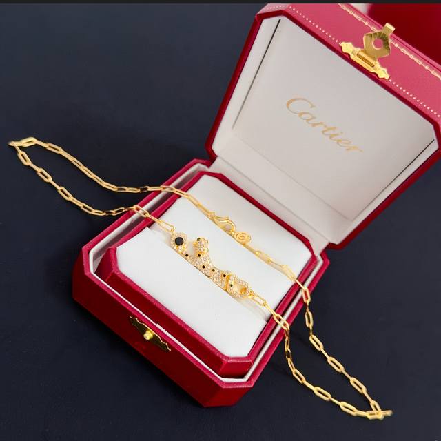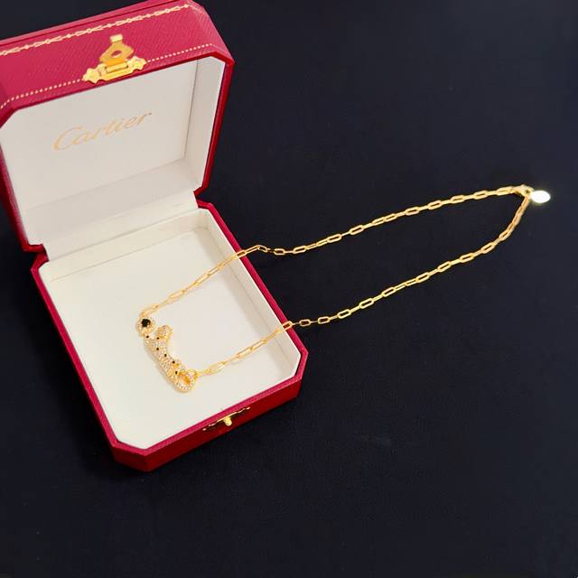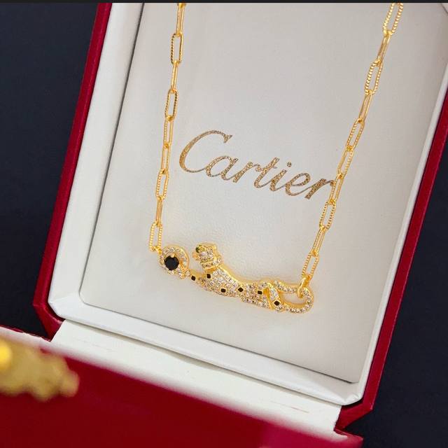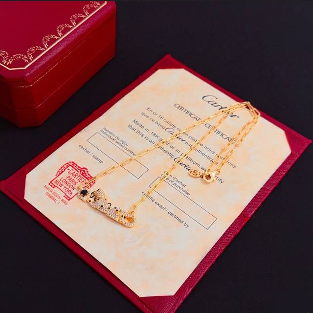 卡地亚镶钻猎豹项链 高端定制版本 镶嵌钻工艺 V金材质 经典而时尚风格 用凌厉线条重构爱情美学!打破常规,镶嵌钻设计反而成就高级感天花板 无需浮华堆砌,爱本应纯