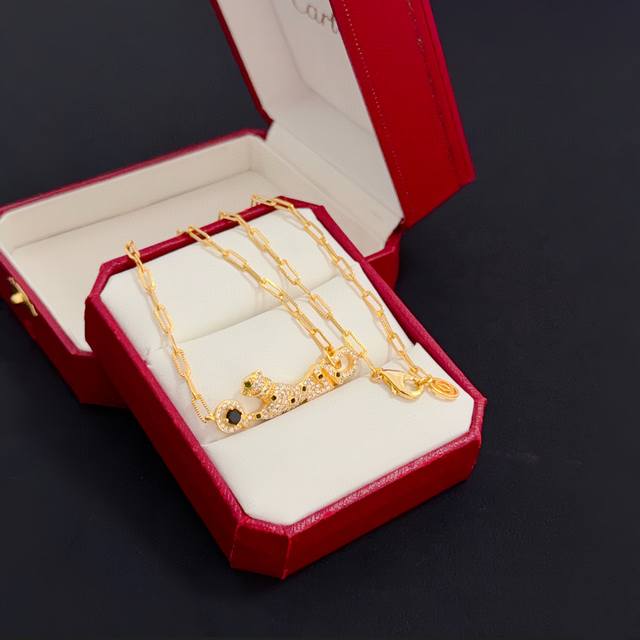 / 卡地亚镶钻猎豹项链 高端定制版本 镶嵌钻工艺 V金材质 经典而时尚风格 用凌厉线条重构爱情美学!打破常规,镶嵌钻设计反而成就高级感天花板 无需浮华堆砌,爱本应纯
