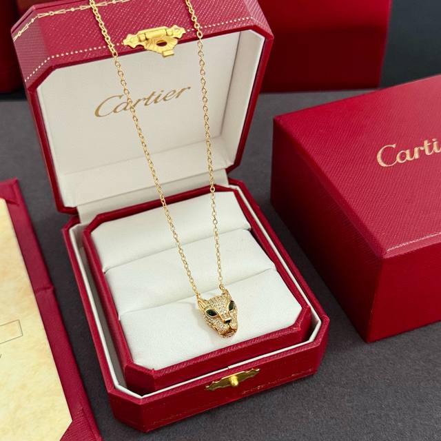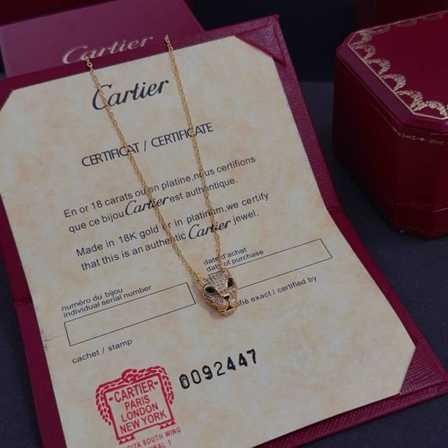 卡地亚镶钻豹头项链 高端定制版本 镶嵌钻工艺 V金材质 经典而时尚风格 用凌厉线条重构爱情美学!打破常规,镶嵌钻设计反而成就高级感天花板 无需浮华堆砌,爱本应纯