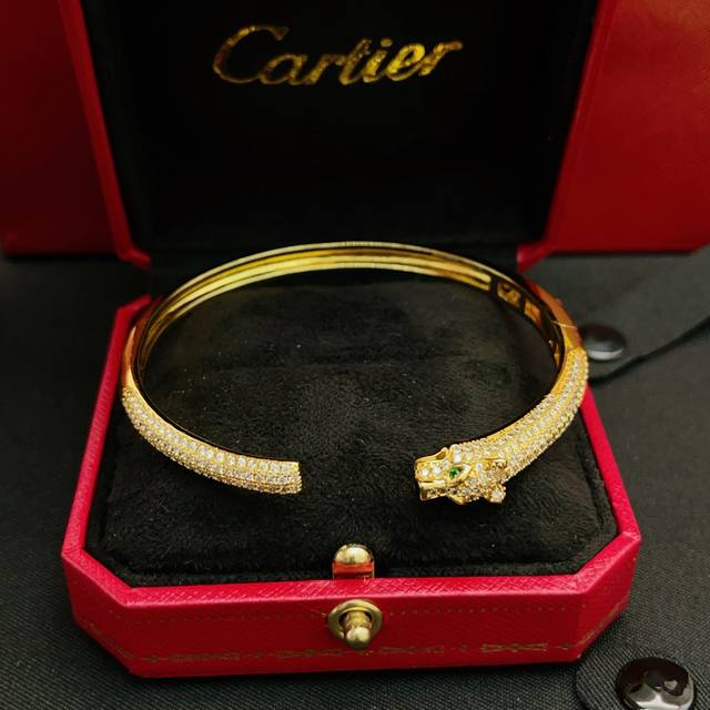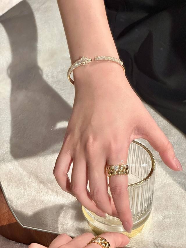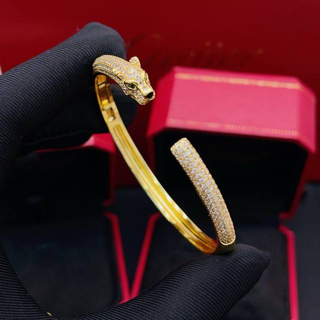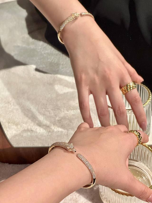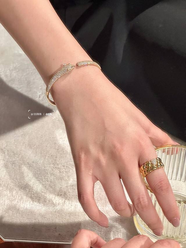 FFF 大小尺寸均码 DDD Cartie*卡地亚最新款金色镶钻豹子手镯 一致Zp黄铜材质,非常的上镜设计很特别值得入手高级手工坊系列 DDD
