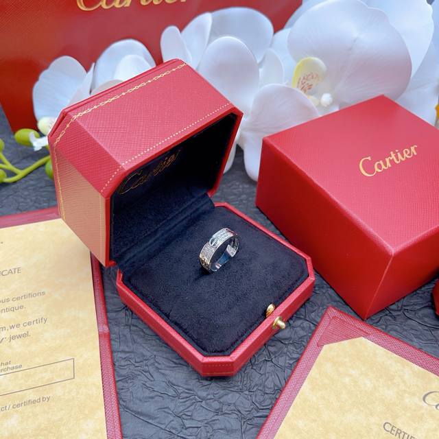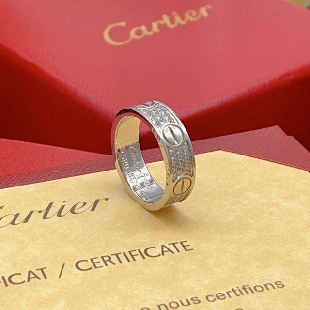 大小尺寸宽版:6号、7号、8号 DDD 卡地亚Cartie*最新款银色镶钻戒指宽版 一致Zp黄铜材质,非常的上镜设计很特别值得入手高级手工坊系列 DDD